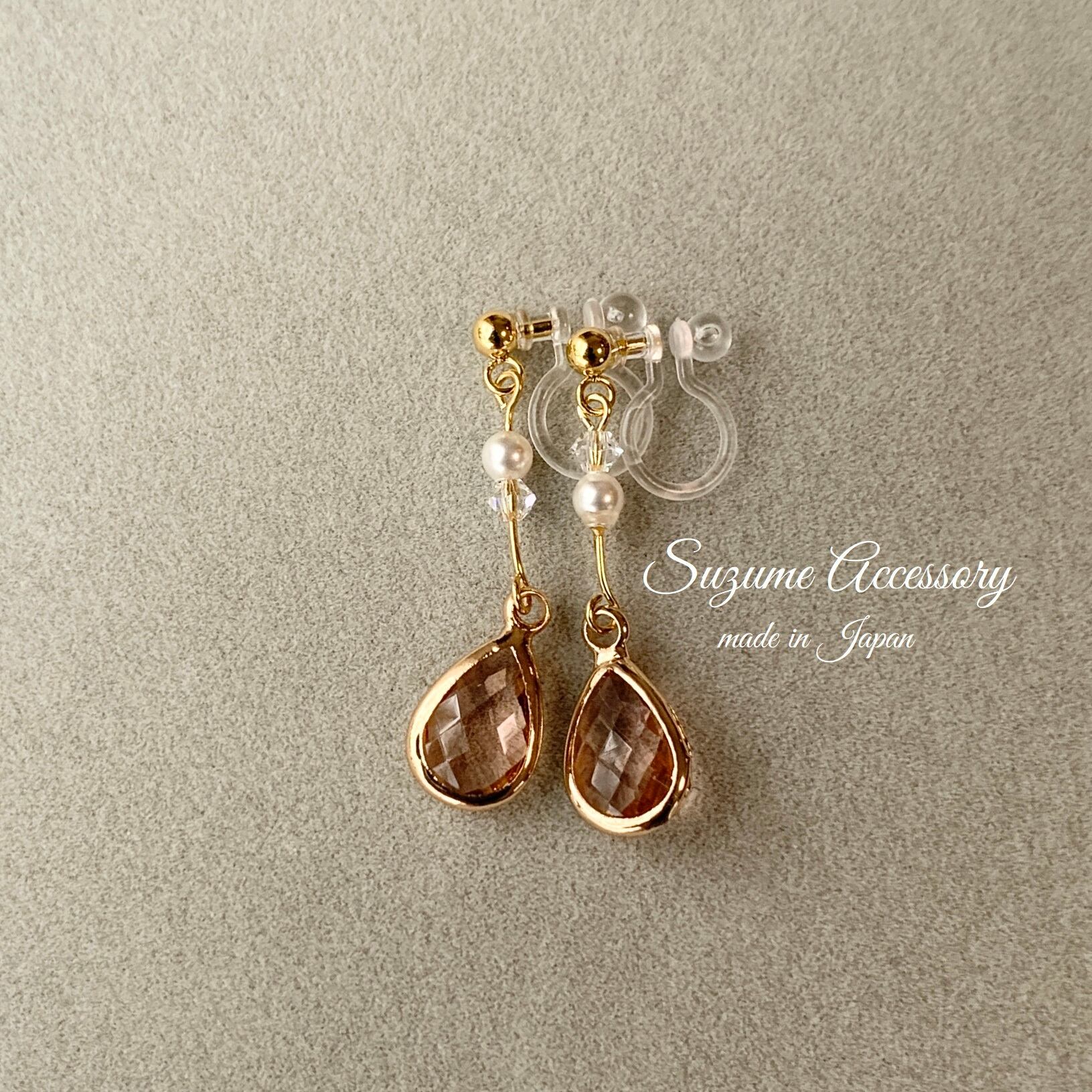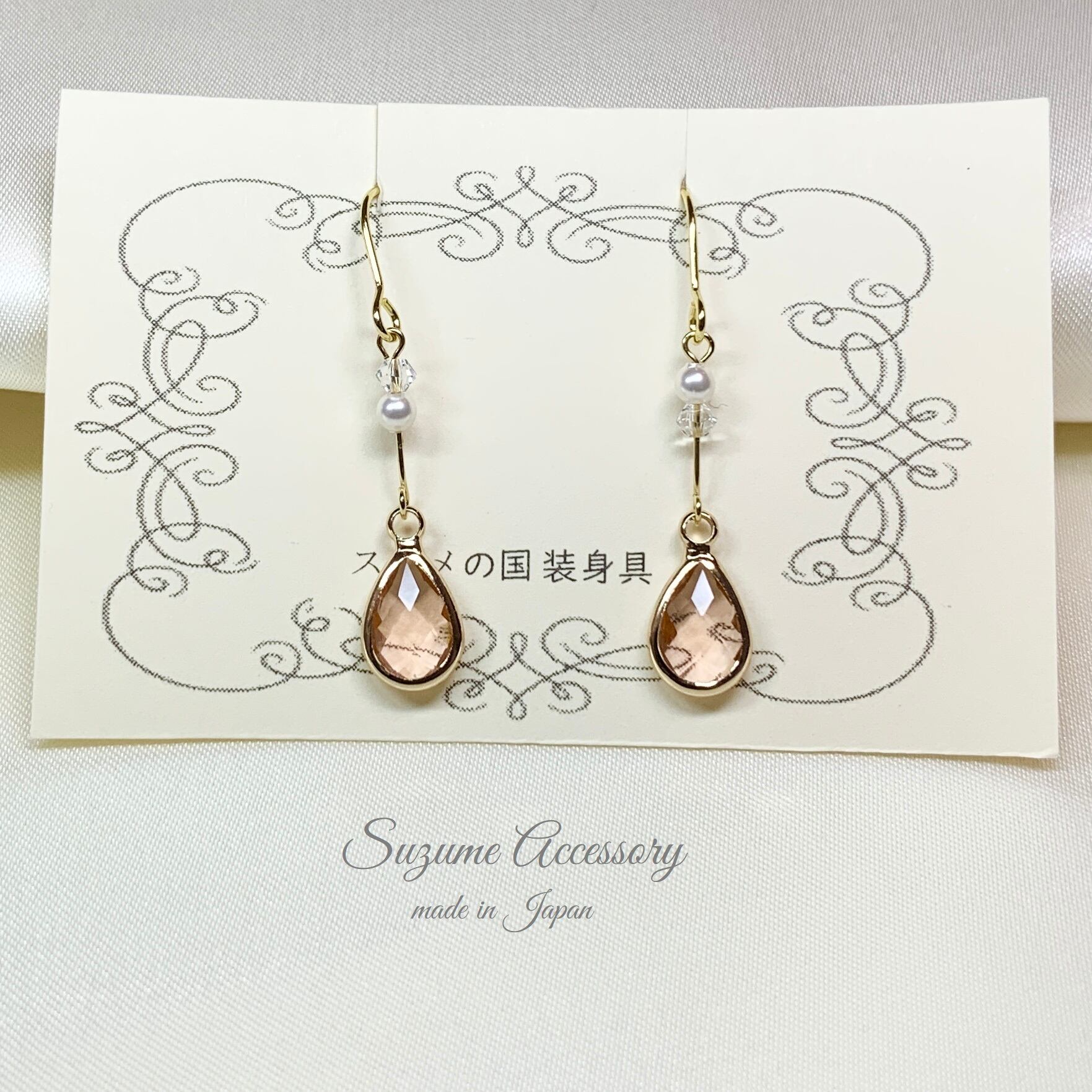 煌めきが美しいガラス雫のピアス/イヤリングです。