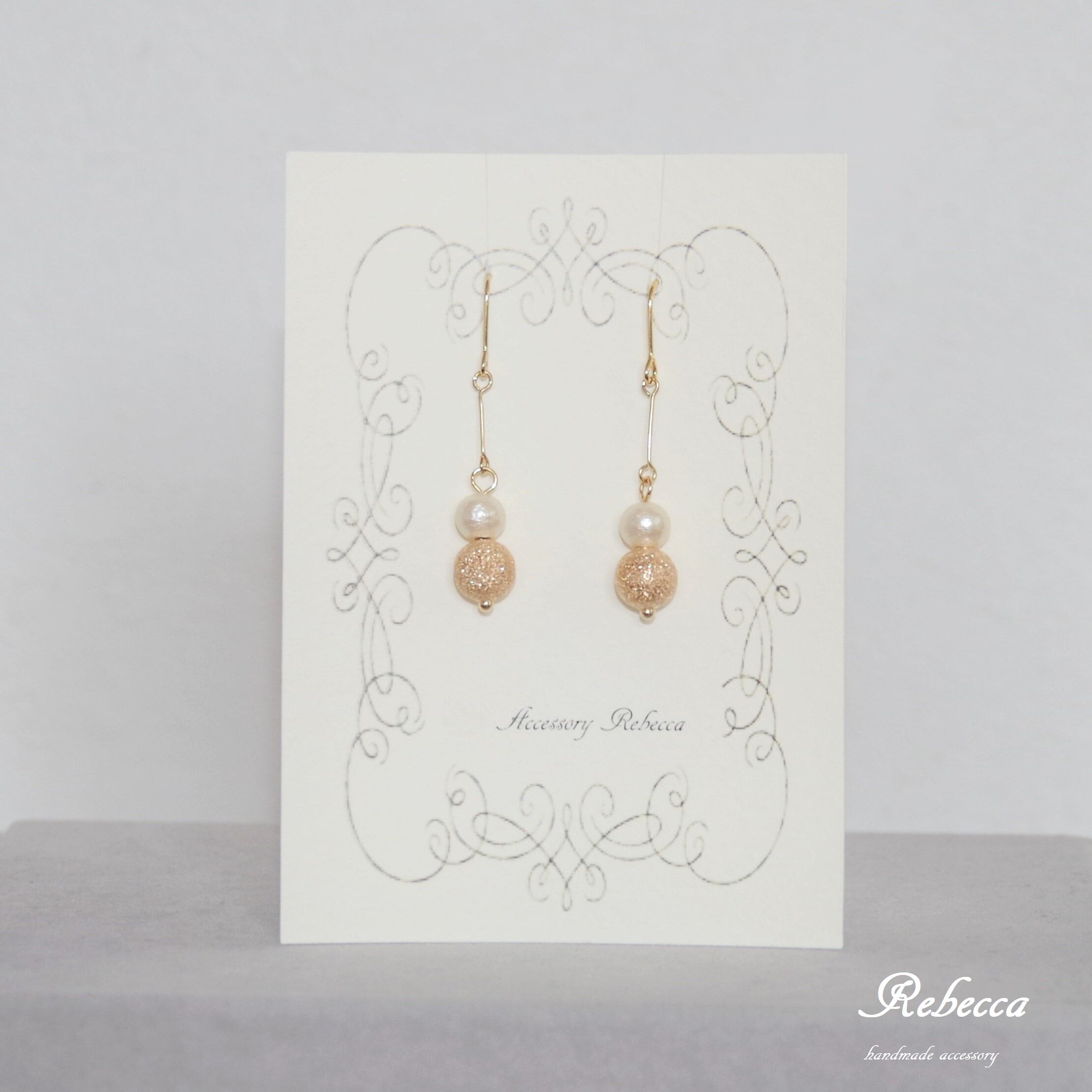 約8mmのスターダストビーズに約6mmのコットンパールを添えました。