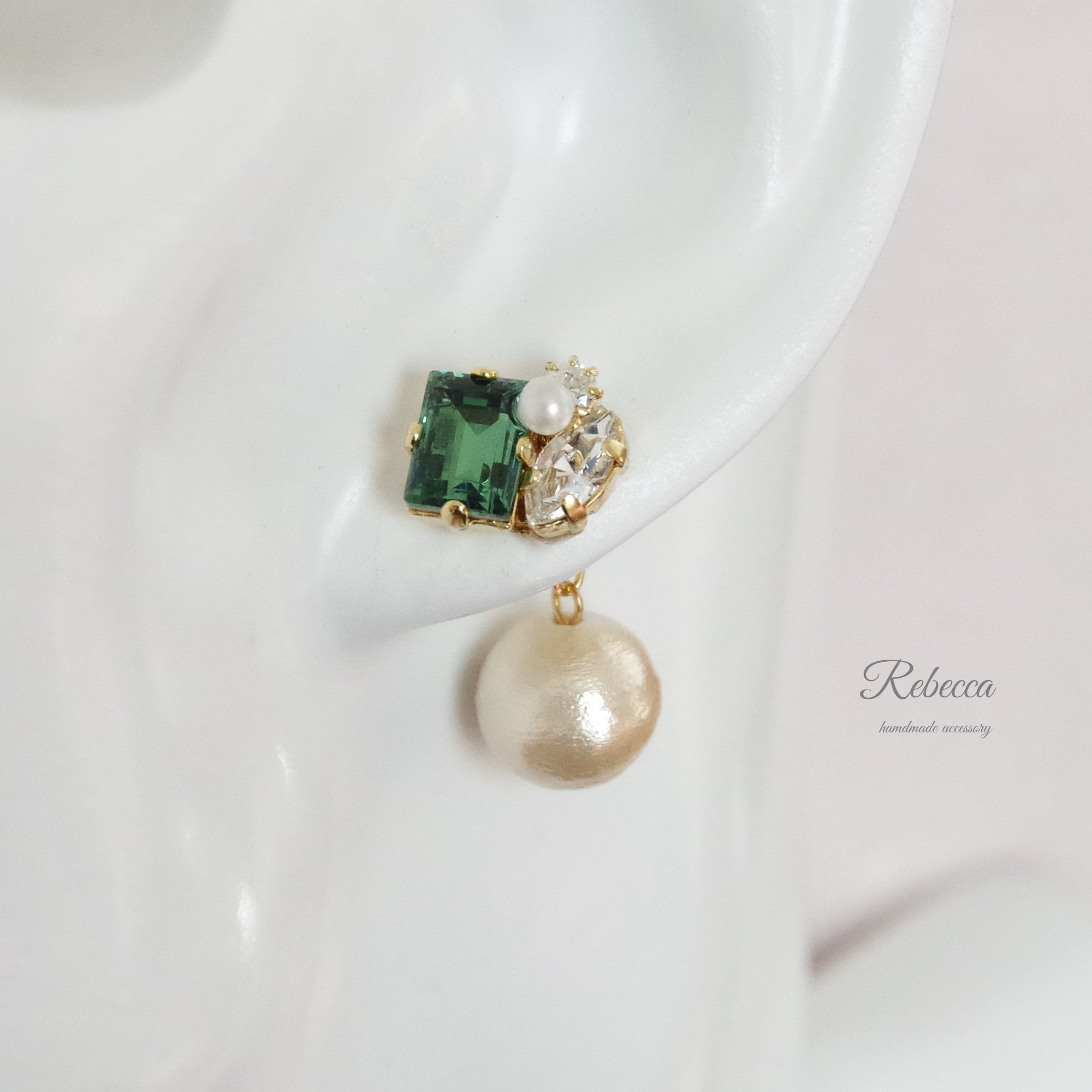 ※イヤリングタイプはコットンパールの取り外しができません。ご了承ください。(コットンパールがご不要の場合は備考欄にご入力ください。取り外したコットンパールを使いもう一つイヤリングをお作りし、一緒にお届けいたします)