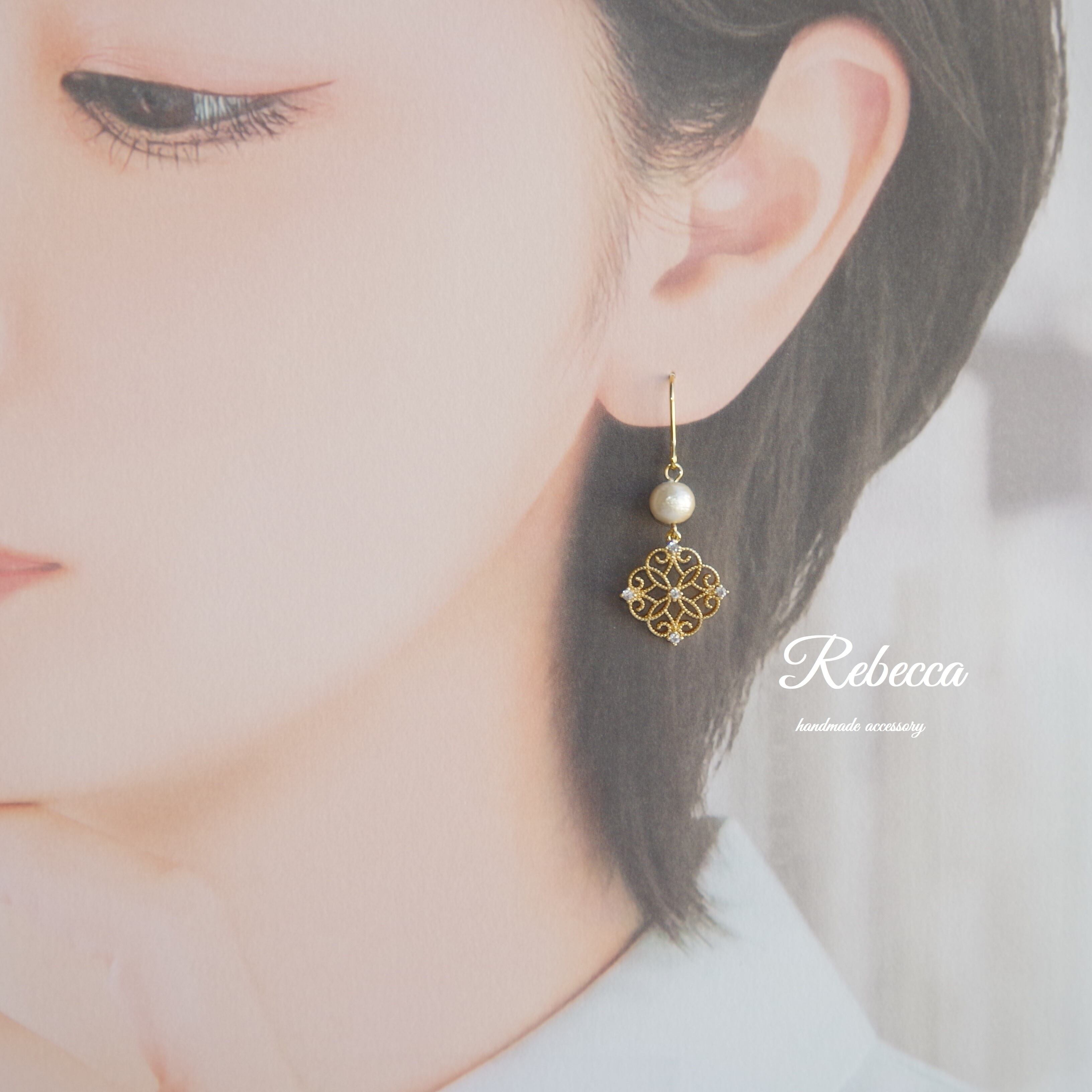 そのジルコニアを結ぶゴールドのモチーフも雪の結晶のような煌めきのような上品な華やかさです。