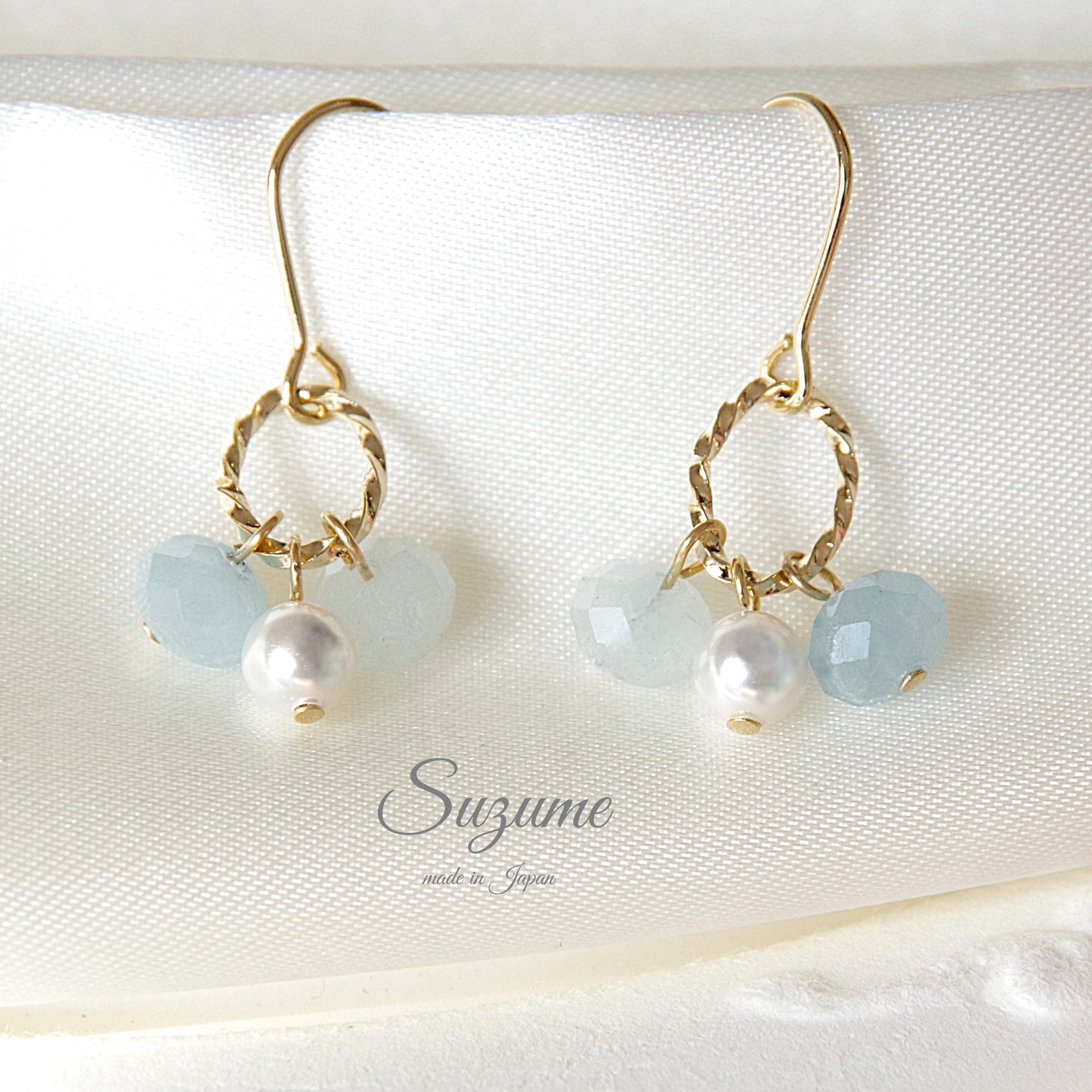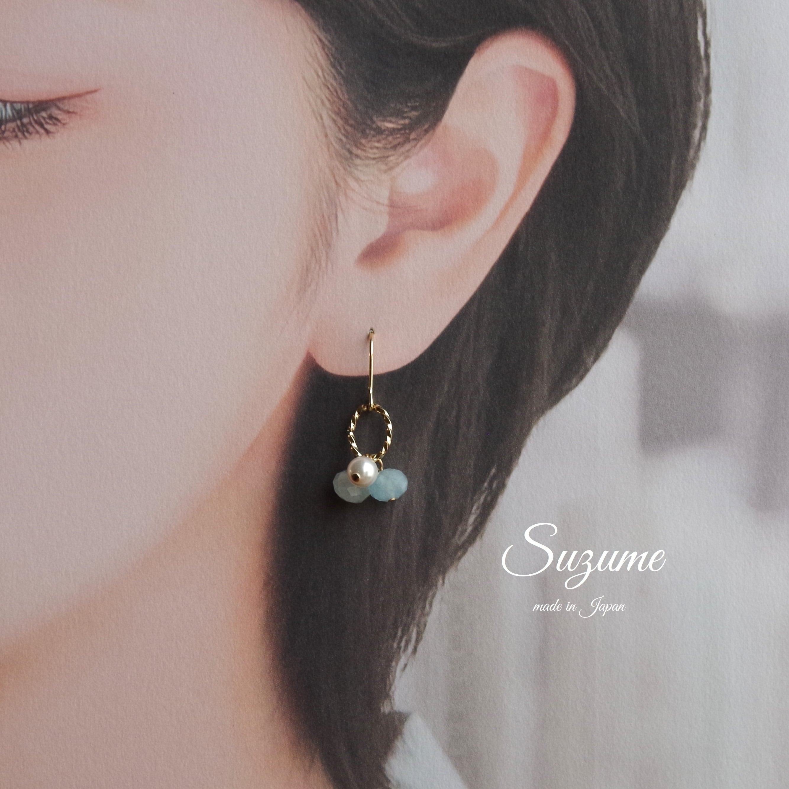 3月の誕生石アクアマリンのピアスイヤリングをご用意致しました。
