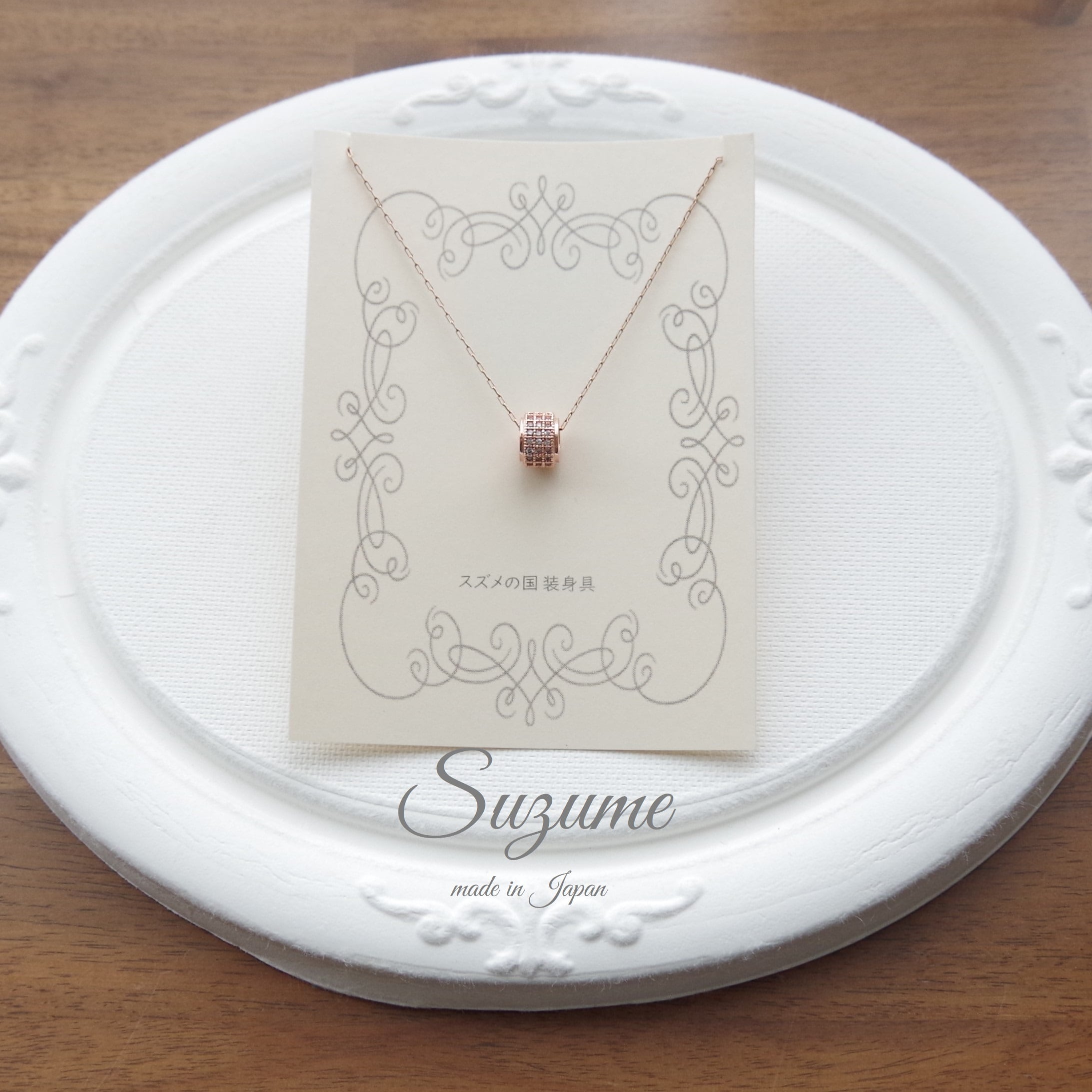 ジルコニアのパヴェリングネックレス☆ピンクゴールドカラー