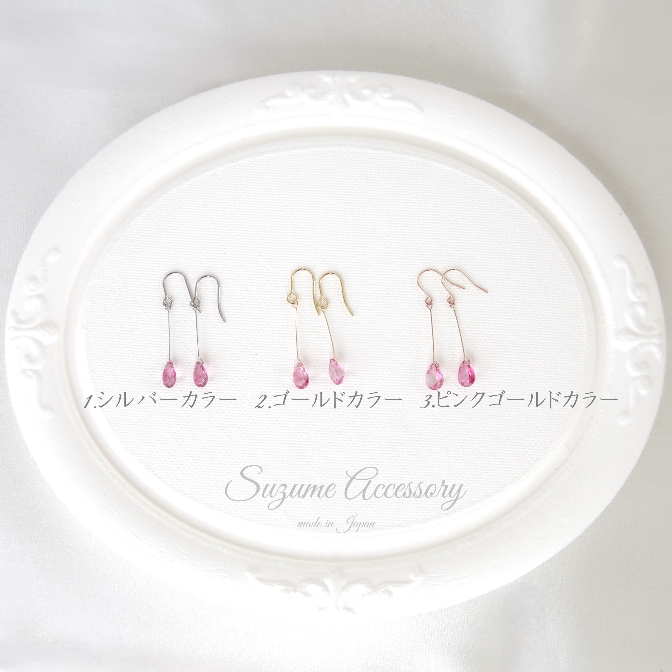 なお、ネジバネ式イヤリング(+100円)、ノンホールピアス(+100円)もございます。